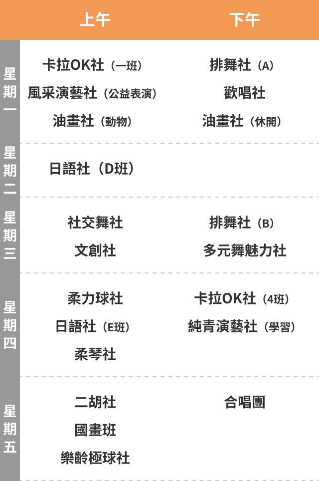 Any group of ten or more seniors may apply to form a club, with venues and equipment provided by the Foundation. Each club operates with a high degree of flexibility and autonomy.