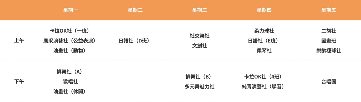 Any group of ten or more seniors may apply to form a club, with venues and equipment provided by the Foundation. Each club operates with a high degree of flexibility and autonomy.
